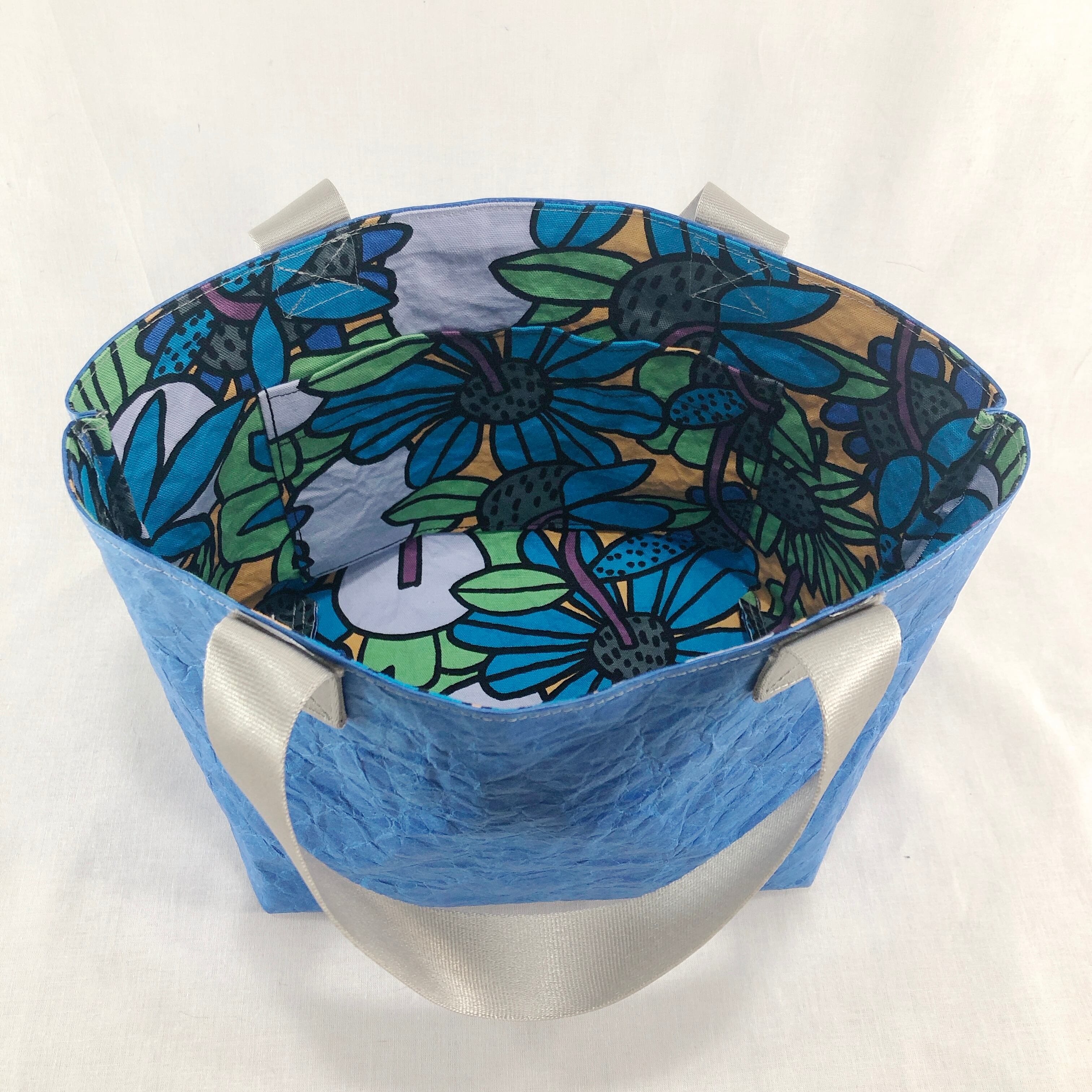 タイベック製シワ加工トート(ブルー×ボタニカル柄#1) S