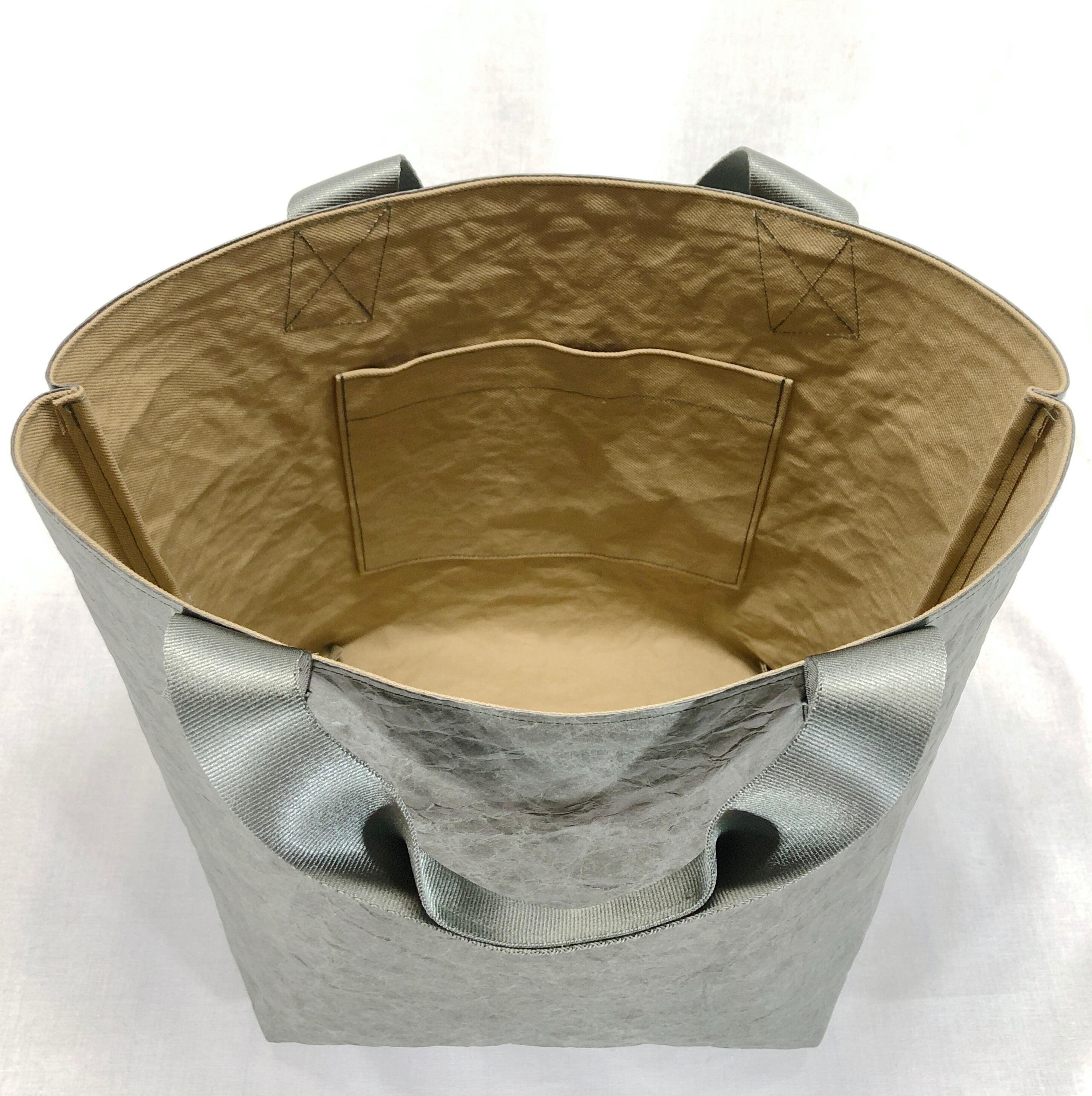タイベックと裏地の張り合わにより裏地にも品の良いシワ感があり、しっかりとした厚みもある他にはない質感のタイベックバッグ。